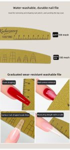 Be the first to review “Salon Grade Nail File with Nail Shape Measurement Scale 100/180 Grit Gold Sand Washable Durable Non-Shedding Manicure Tool for Nail Removal, Buffing & Shaping, Ideal for Salons & Home Use”